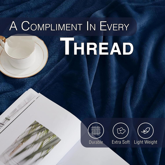 ★Navy Blue Bed Throws with Worthy Thickness: With just the right thickness, our navy throws for sofas large strikes the perfect balance between lightweight comfort and snug warmth. This makes our blue fleece blankets for adults, ideal for any season. Elegant colors of our blue throw & big fluffy blanket adds a touch of sophistication to any space.