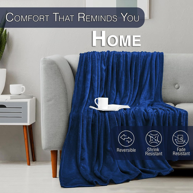 Bedbric Blue Blanket & Throws for Sofas Large - 400 GSM Cozy Navy Throws for Sofas - Soft & Durable Navy Throws for Sofas, Beds & Couch.